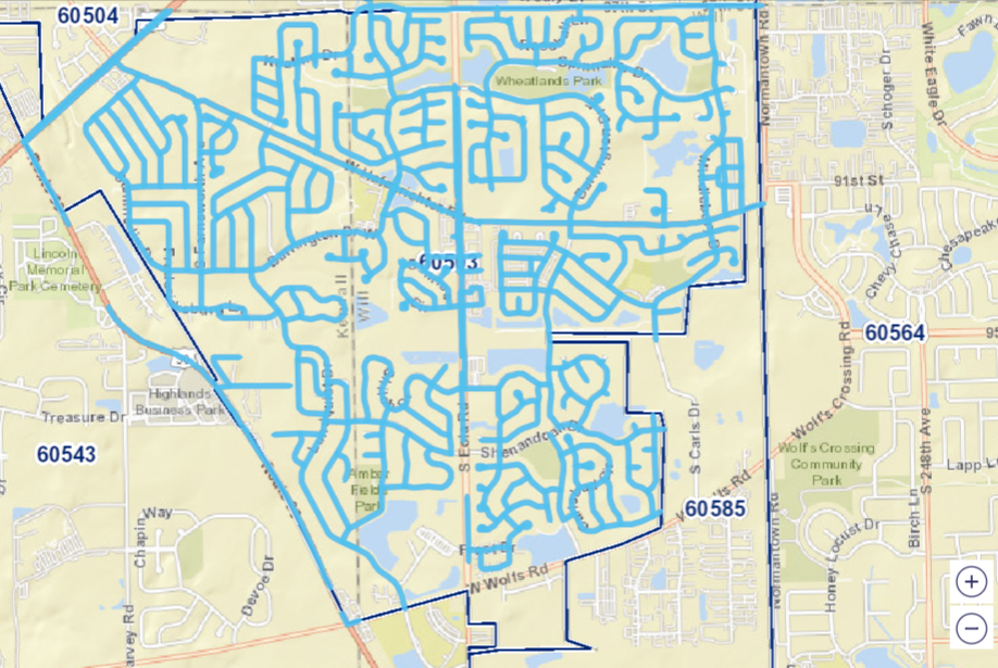 Approximately 7,635 housing units in 60585 5,871 in 60544
